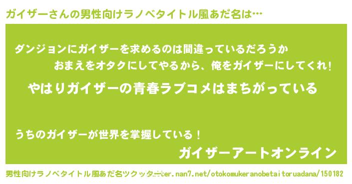 | 女子向けラノベタイトル風あだ名 | 『ガイザーの雑貨屋さん』 |