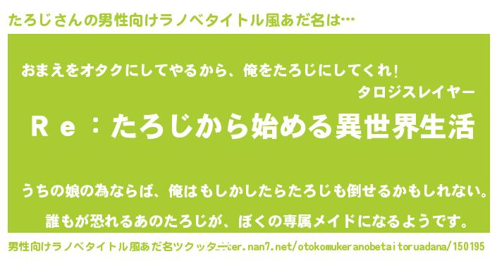 | 女子向けラノベタイトル風あだ名 | 『たろじストレイドッグス』 |