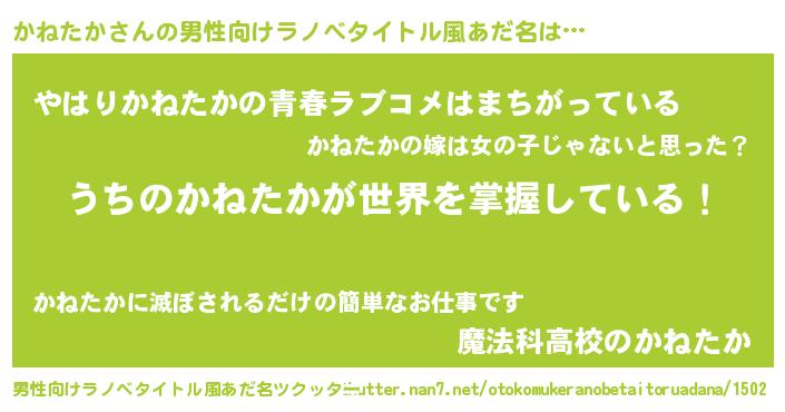 | 胡散臭い通販商品みたいなあだ名 | 『運命の人と巡り会える高級そうな壺…その名も「かねたか」』 |