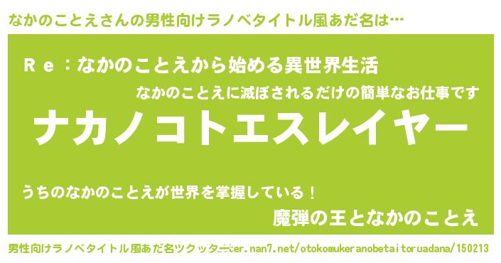 | 肩書あだ名 | 『なかのことえ少尉』『なかのことえ総統』 |