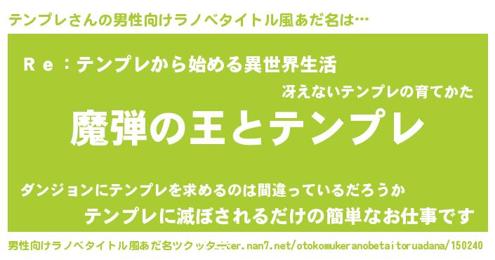 | 意味不明あだ名 | 『住所不定無職テンプレ(47歳)』 |