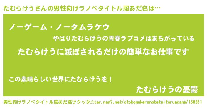 | 女子向けラノベタイトル風あだ名 | 『横柄たむらけうと宰相陛下』 |