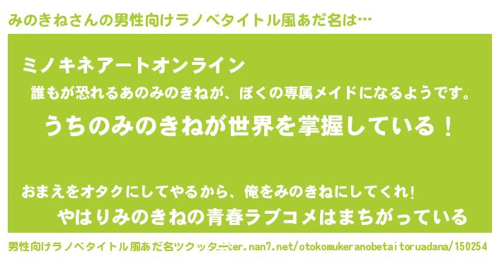 | 胡散臭い通販商品みたいなあだ名 | 『億万長者になれる霊験あらたかなお札…その名も「みのきね」』 |