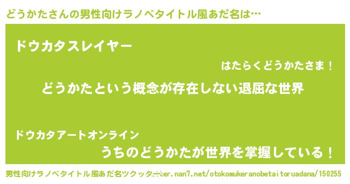 どうかたさんの男性向けラノベタイトル風あだ名をツクッター!