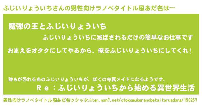 | ヘコむあだ名 | 『ふじいりょういち(笑)』『ふじぷりん』 |