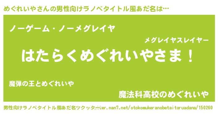 | 伝説のあだ名 | 『人々から恐れられる錬金術士めぐれいや』 |