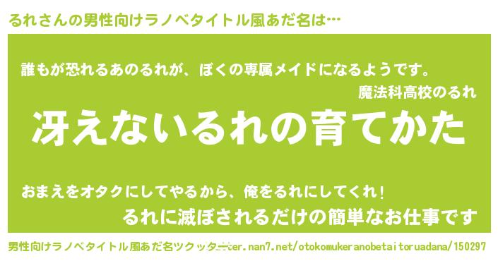 | 胡散臭い通販商品みたいなあだ名 | 『来世でも幸せになれる健康食品…その名も「るれ」』 |