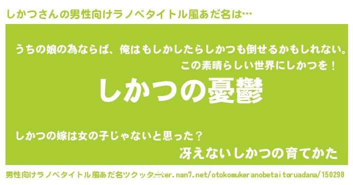 | 胡散臭い通販商品みたいなあだ名 | 『必ず成功する水晶球…その名も「しかつ」』 |