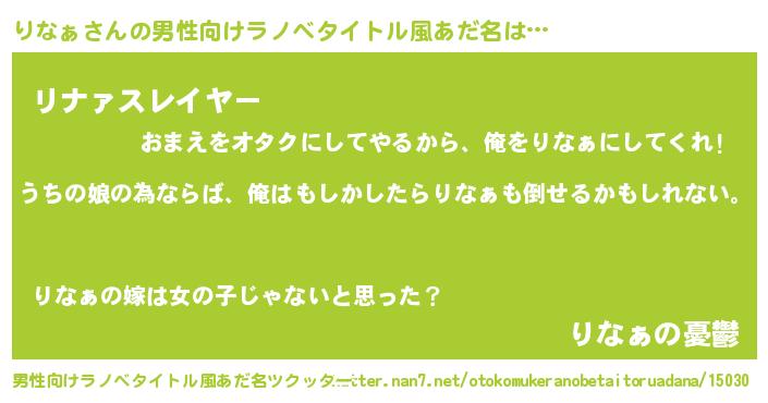 | 女子向けラノベタイトル風あだ名 | 『りなぁの婚約者』『りなぁ様がみてる』 |