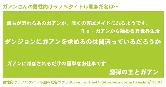 | 女子向けラノベタイトル風あだ名 | 『ガアンは平凡を望む』『闇のガアン』 |
