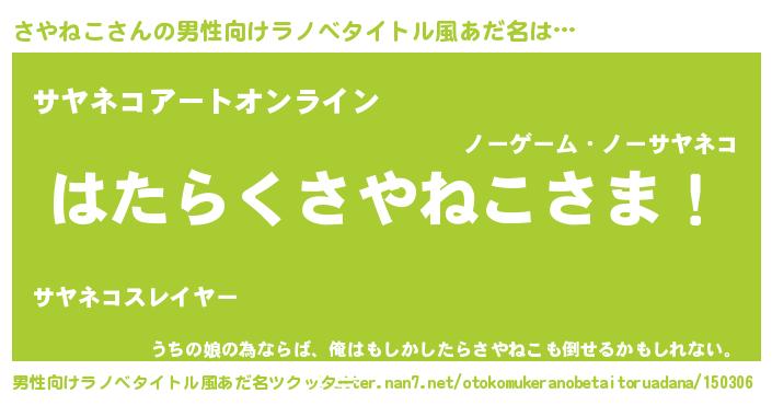 | ファンタジー風あだ名 | 『サヤフェル』『エターナルサヤネコー』 |