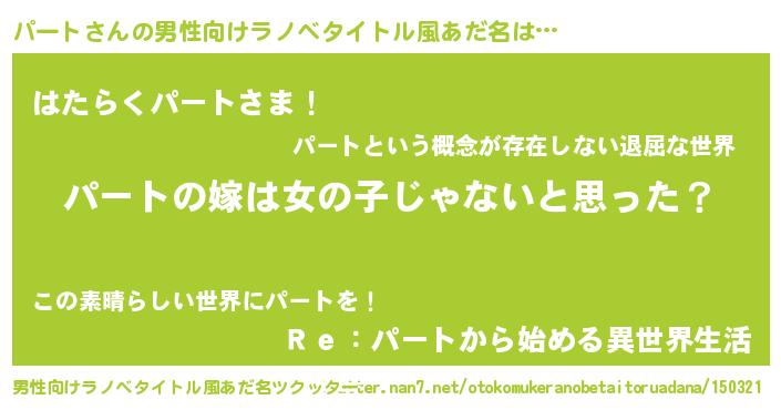| 女子向けラノベタイトル風あだ名 | 『パート様がみてる』 |