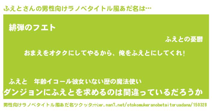 | 女子向けラノベタイトル風あだ名 | 『ふえと恋絵巻』『ふえと姫と円卓の騎士』 |