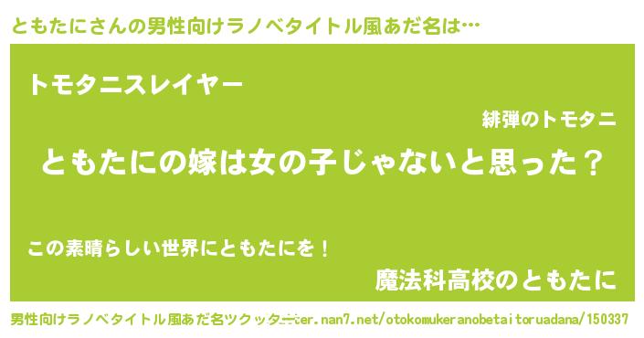 | 女子向けラノベタイトル風あだ名 | 『ともたに様がみてる』 |