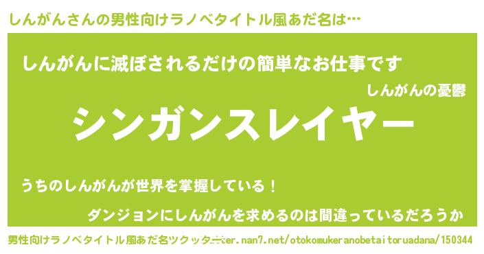 | 胡散臭い通販商品みたいなあだ名 | 『信頼と実績のペンダント…その名も「しんがん」』 |