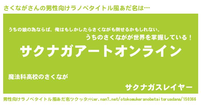 | 女子向けラノベタイトル風あだ名 | 『さくなが姫と円卓の騎士』 |