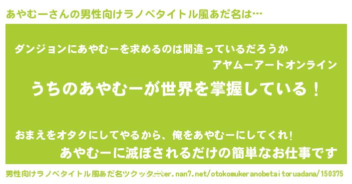 | 女子向けラノベタイトル風あだ名 | 『男装あやむーの憂鬱な任務』 |
