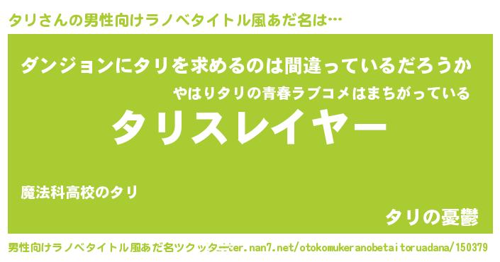 | ヒーロー風カッコイイあだ名 | 『暗黒騎士タリ』『スーパータリ』 |