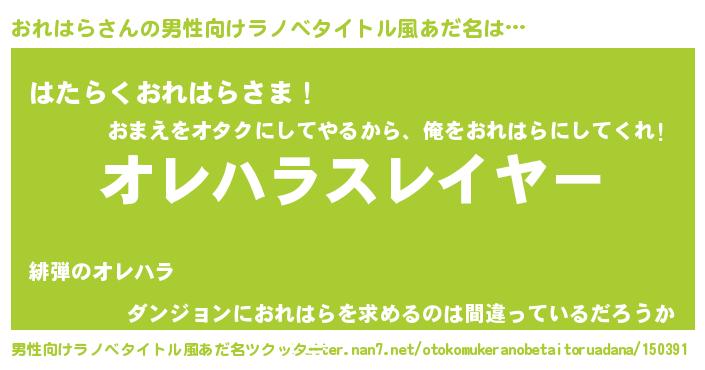 | 胡散臭い通販商品みたいなあだ名 | 『信頼と実績のネックレス…その名も「おれはら」』 |