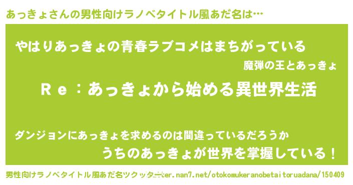 | 意味不明あだ名 | 『自称あっきょ』『あっきょフォーエバー』 |