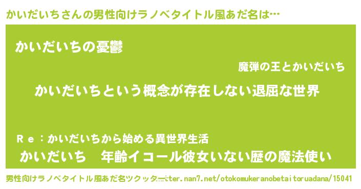 | ヘコむあだ名 | 『かいだいち(小並感)』『かいもー』 |