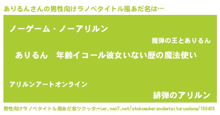 | 肩書あだ名 | 『ありるん大将』『ありるん助教授』 |