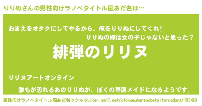 | ヘコむあだ名 | 『りりぬ(小並感)』『りりお』『牛乳』 |