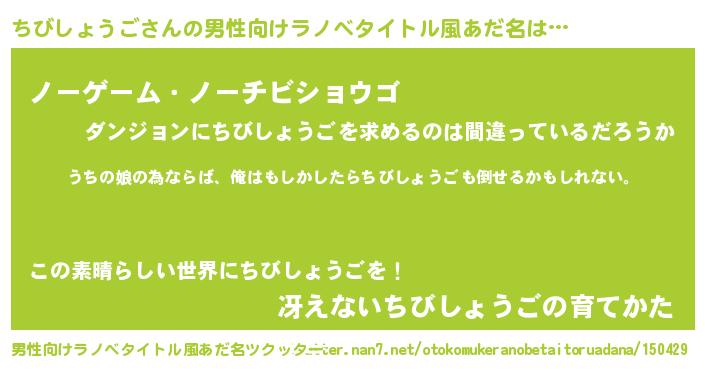 ちびしょうごさんの男性向けラノベタイトル風あだ名をツクッター!