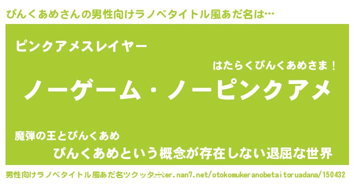 | ヒーロー風カッコイイあだ名 | 『慈愛の使者ぴんくあめ』『仮面ピンダー』 |