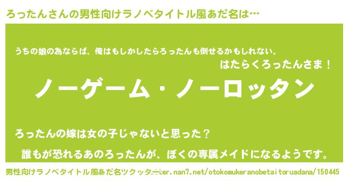 | 伝説のあだ名 | 『救世主となる技術者ろったん』 |