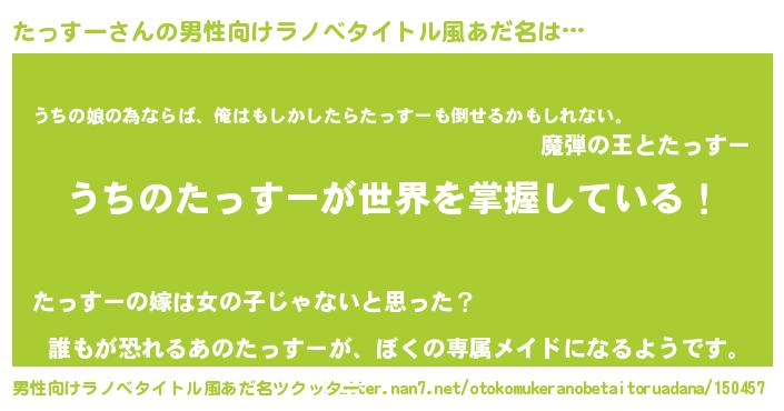 | 胡散臭い通販商品みたいなあだ名 | 『運命の人と巡り会える高級そうな絵画…その名も「たっすー」』 |