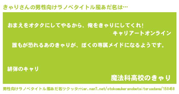 | 女子向けラノベタイトル風あだ名 | 『きゃりの契約王妃』 |