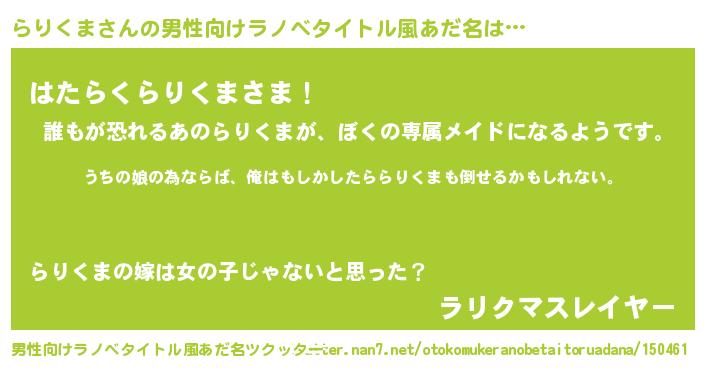 | 女子向けラノベタイトル風あだ名 | 『らりくま伯爵の花嫁』 |