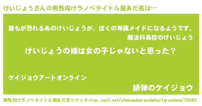 | 女子向けラノベタイトル風あだ名 | 『けいじょうの卵を拾いまして』 |