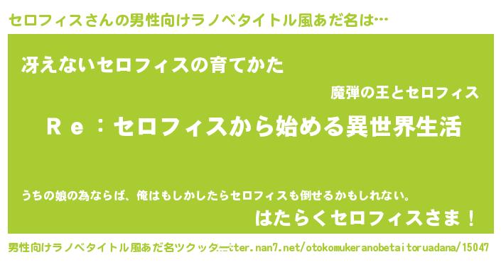 | 女子向けラノベタイトル風あだ名 | 『闇のセロフィス』 |