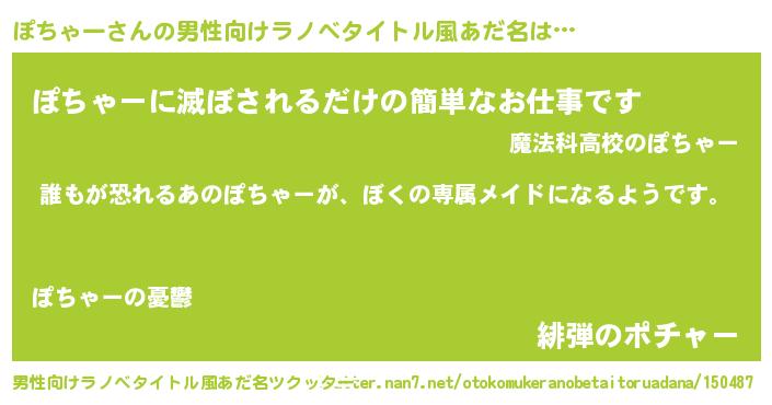 | ヒーロー風カッコイイあだ名 | 『ネオポチャー』『サイバー戦士ポチャー』 |