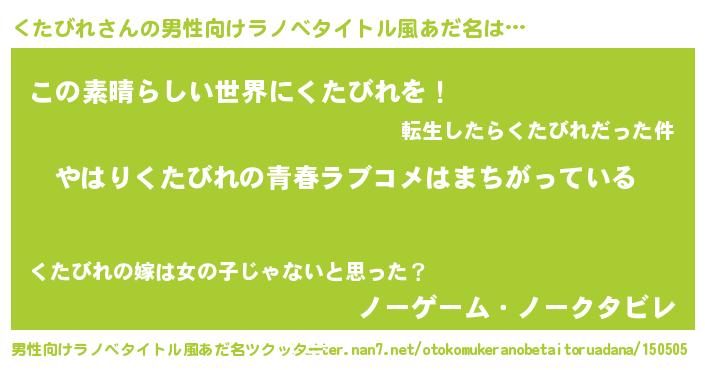 | 胡散臭い通販商品みたいなあだ名 | 『世界が平和になる高級そうな壺…その名も「くたびれ」』 |