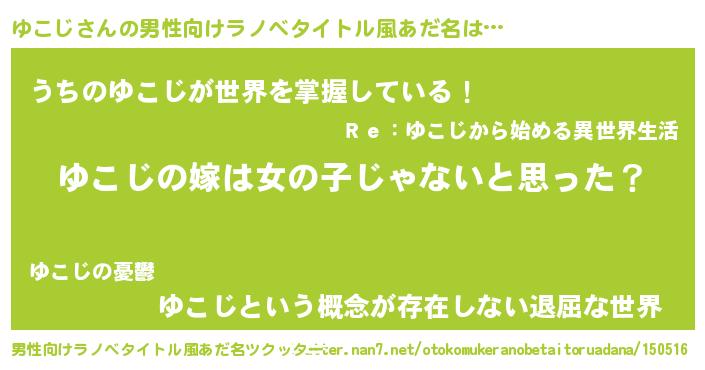 | 意味不明あだ名 | 『とにかく怪しいゆこじ』『自称ゆこじ』 |