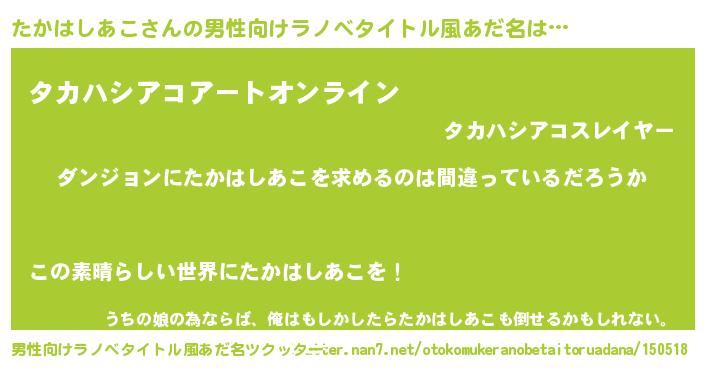 | 女子向けラノベタイトル風あだ名 | 『たかはしあこは平凡を望む』 |