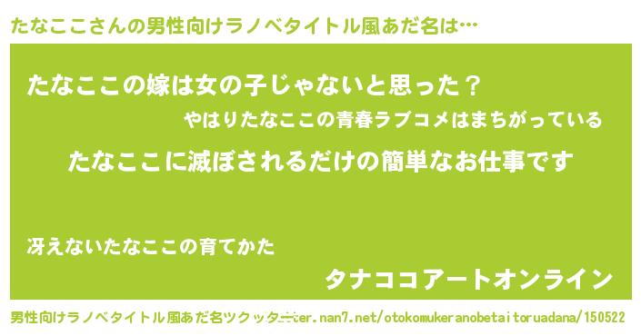 | ヒーロー風カッコイイあだ名 | 『銀牙騎士タナ』『スーパータナココ』 |