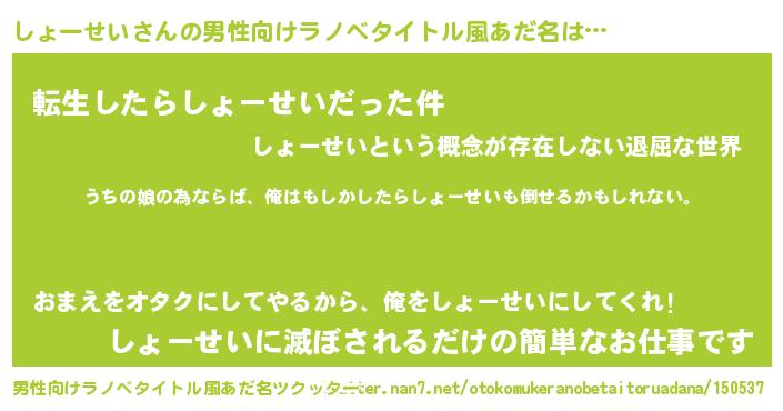 | 胡散臭い通販商品みたいなあだ名 | 『運命の人と巡り会える高級そうな壺…その名も「しょーせい」』 |