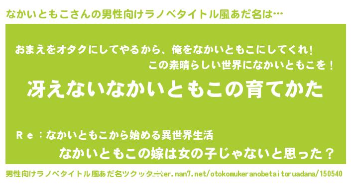 | 胡散臭い通販商品みたいなあだ名 | 『お金では代えられない隕石のかけら…その名も「なかいともこ」』 |