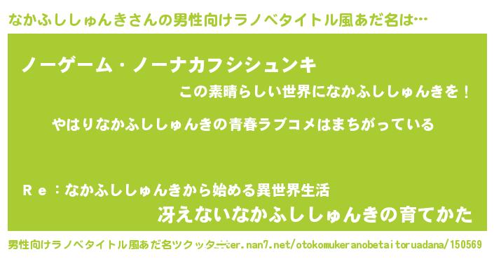 | 女子向けラノベタイトル風あだ名 | 『なかふししゅんき伯爵の花嫁』 |