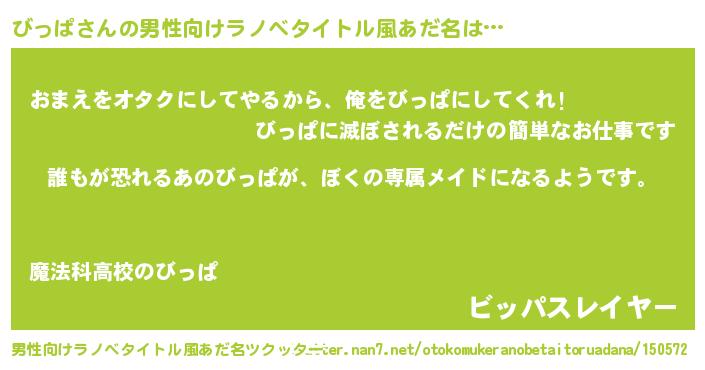 | 女子向けラノベタイトル風あだ名 | 『異世界でカフェびっぱを開店しました。』 |