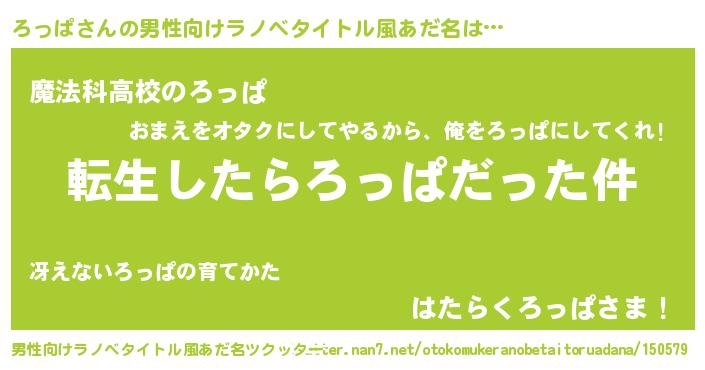 | ヘコむあだ名 | 『ろっぱ(爆)』『ろっにー』『豆乳』 |