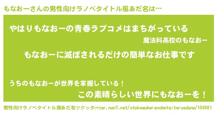 | ファンタジー風あだ名 | 『エターナルモナオーー』『ゼモナトゥ』 |