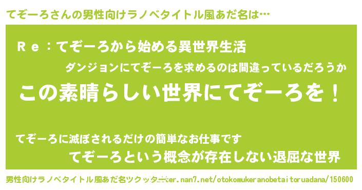 | 意味不明あだ名 | 『住所不定無職てぞーろ(8歳)』 |