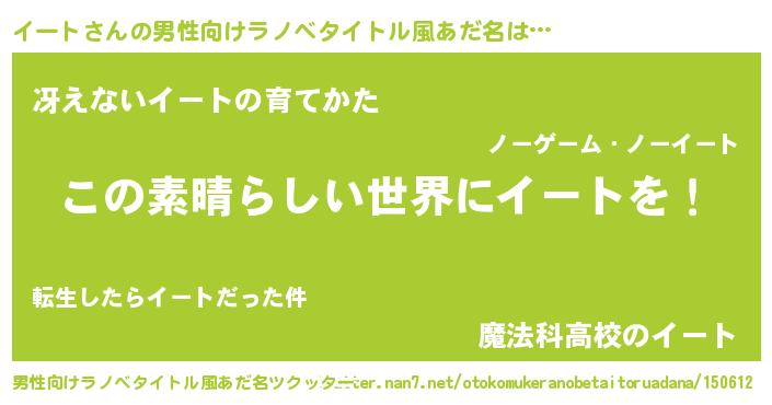 | 胡散臭い通販商品みたいなあだ名 | 『あなたにだけ特別に提供する限定10本のレアな日本酒…その名も「イート」』 |