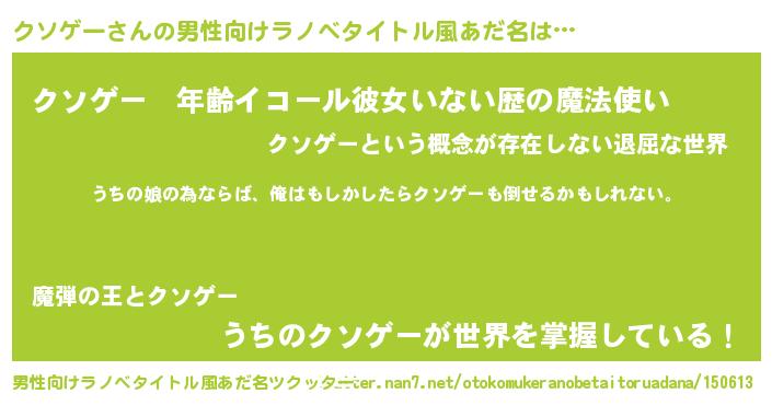 | 胡散臭い通販商品みたいなあだ名 | 『世界が平和になる高級そうな絵画…その名も「クソゲー」』 |