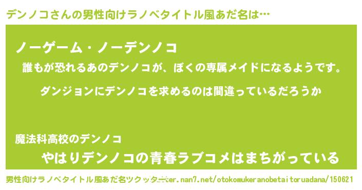 | 意味不明あだ名 | 『とにかく怪しいデンノコ』 |